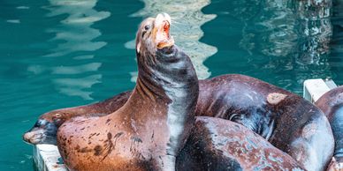 California sea lions (Zalophus californianus) love to lay on the rocks and the docs while they are visiting Yaquina Bay. Port Dock One is the main place to see them up-close. Voted best Free tourist attraction, Port Dock One is open 24 hours a day 7 days a week. There is no railing at the end of the doc, so please don't have children run down the dock!