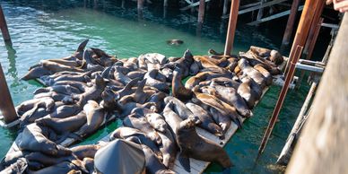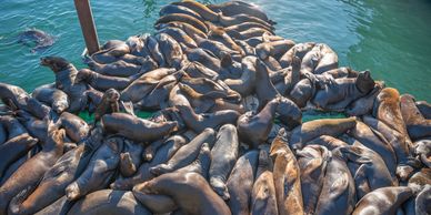 Adult and sub-adult sea lion males can be found on the docs. They live here for 11 months out of the year. In July they migrate to the Channel Islands of southern California where the females stay year-round. (We locals call July, "quiet summer nights" because it is the only time of year you cannot hear them barking) After breading they return around the first week in August.